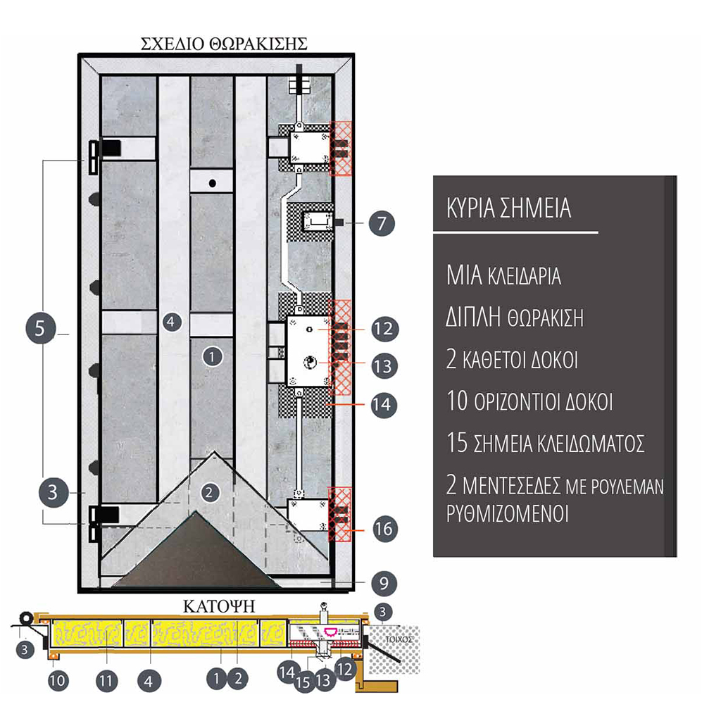 16. ΠΡΟΣΤΑΣΙΑ ΠΥΡΩΝ ΚΛΕΙΔΑΡΙΑΣ & ΠΥΡΩΝ ΕΚΤΡΟΠΕΩΝ με μεταλλική “φωλιά” πάνω στην κάσα.